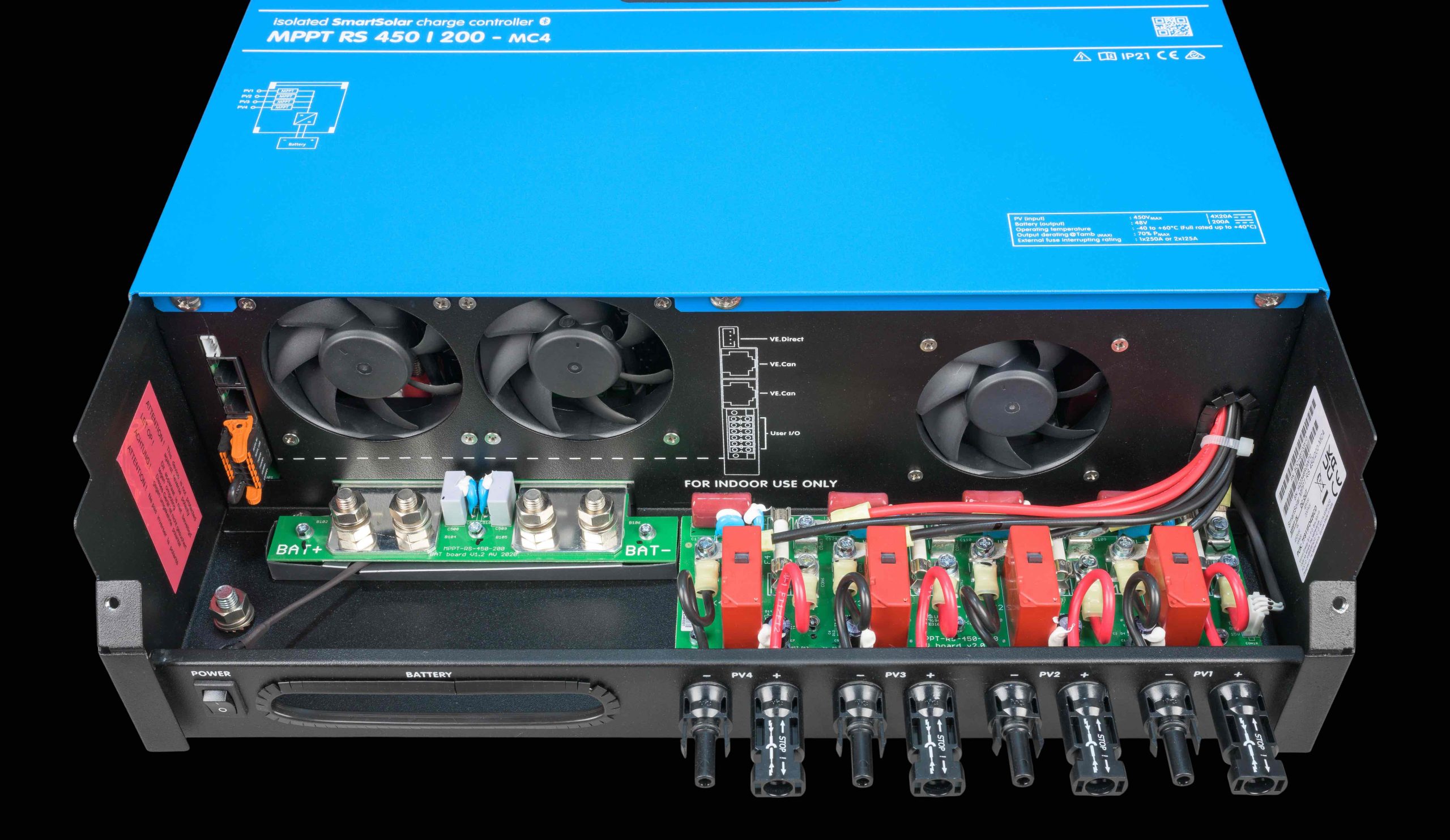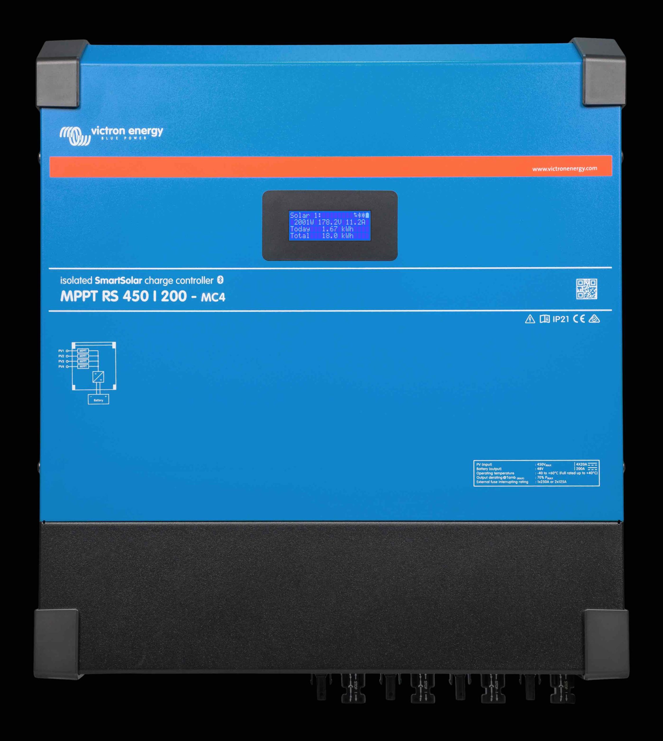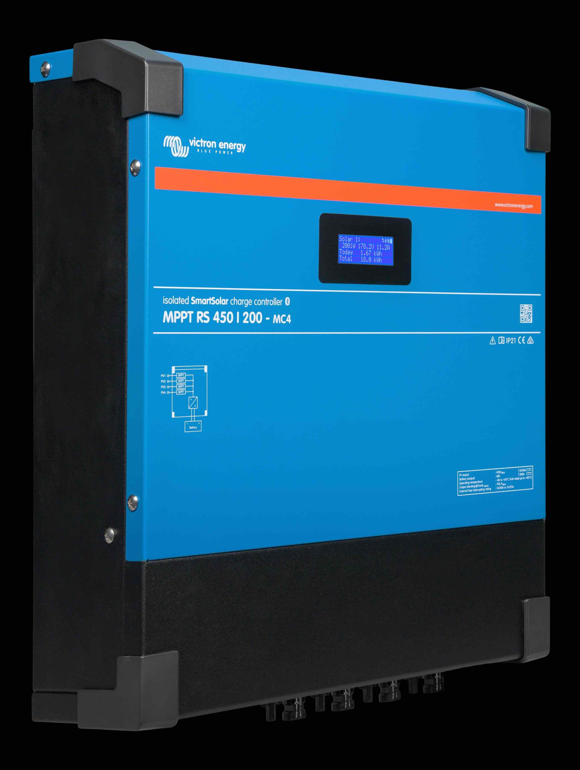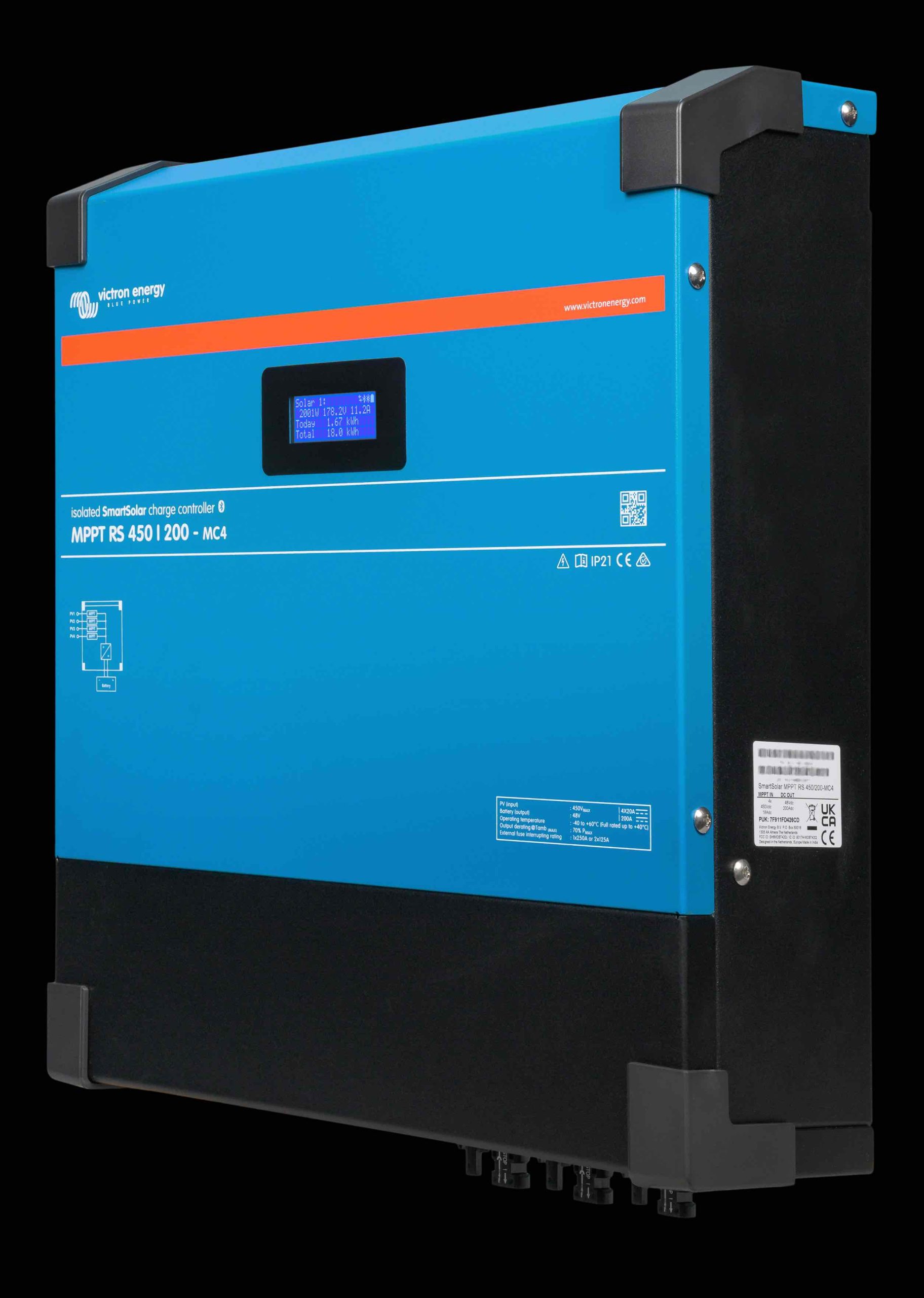 SmartSolar MPPT RS 450/200 (ca. 12,6 kW) er ideelle, hvis du vil have en fleksibel og fremtidssikret løsning, der kombinerer høj ydeevne, pålidelighed og avanceret styring i samme enhed.