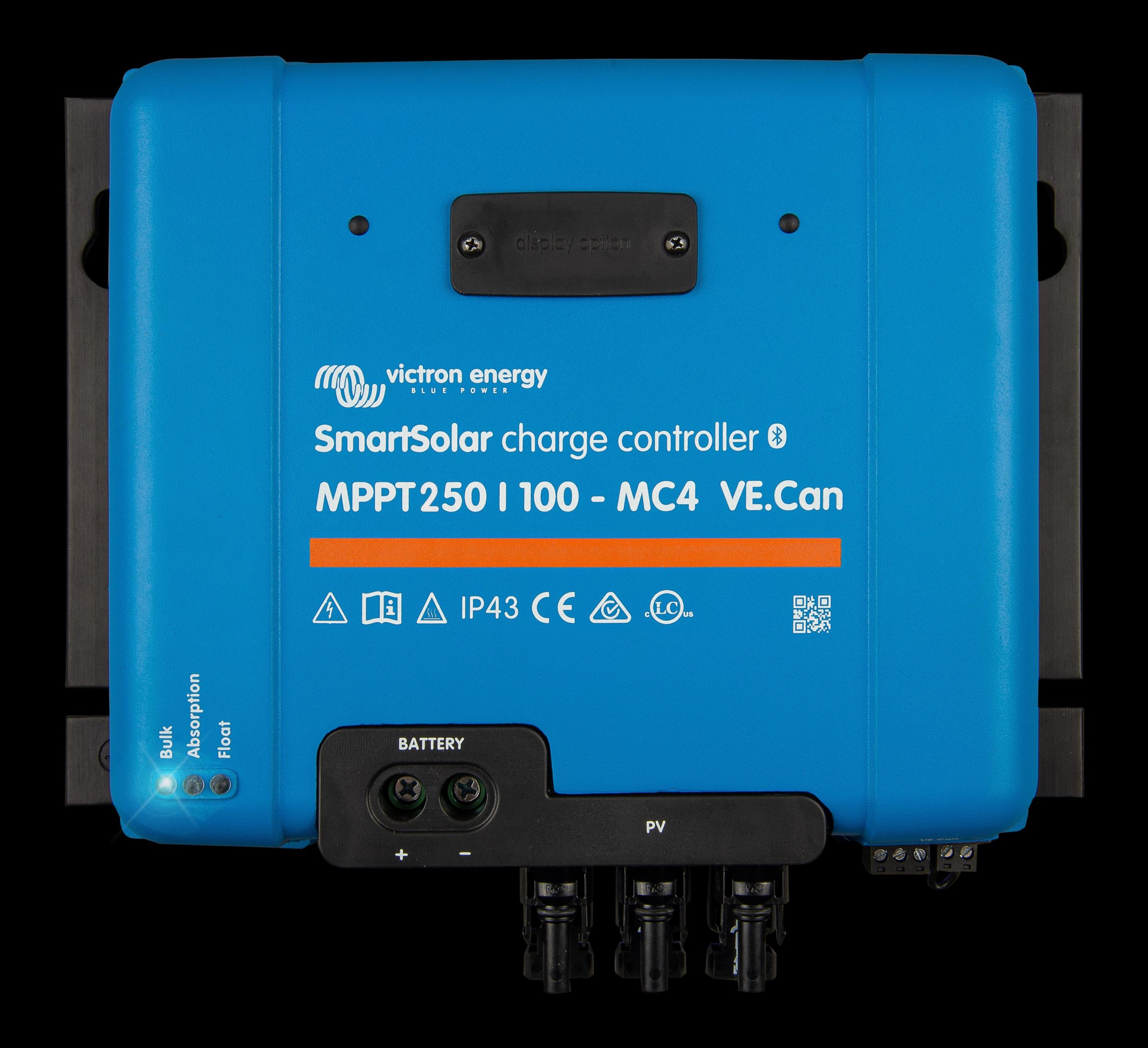 SmartSolar 250/100 VE.Can er udstyret med VE.Can-kommunikation, som gør det muligt at forbinde flere laderegulatorer, så de arbejder synkroniseret. Den inkluderer desuden VE.Direct, programmerbar batteriopladning, indbygget temperatursensor og omfattende elektronisk beskyttelse mod overbelastning, kortslutning og overophedning. Dette giver en sikker og driftsstabil løsning – også i krævende installationer.